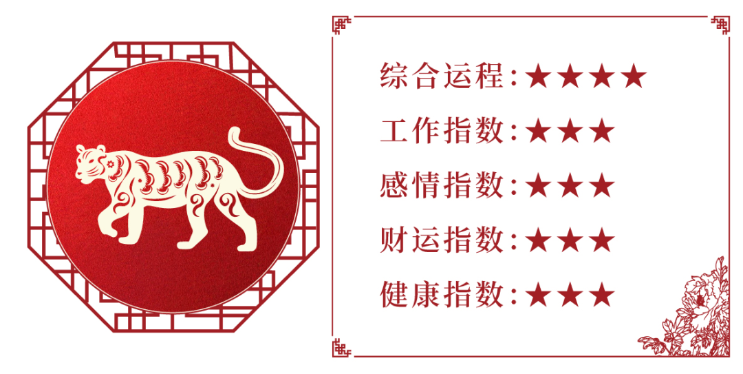 本月对生肖虎的朋友来讲,运势比较有利,事业工作良性发展,业绩突出,本月遇“财星护身”财星主事业运,代表机缘佳,说明生肖虎的朋友在本月谋事多得他人相助,机会较好之意,可以说属于多做多成的一个有利的月份。