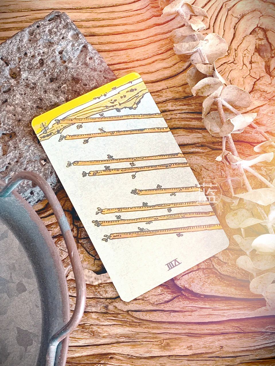 权杖8原本洋溢的强大行动力和热情,在逆位的状态下则会呈现出阻滞的状态,所以本周你会显得有些状态低迷,对很多事情都提不起兴趣来,会有一种困顿感,比如不知道该做什么,或者不知道该怎么去应对,以往的那种自信与执行力仿佛被封印住了,凭空多了许多迷惘。