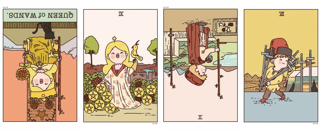 逆位权杖皇后、正位星币九