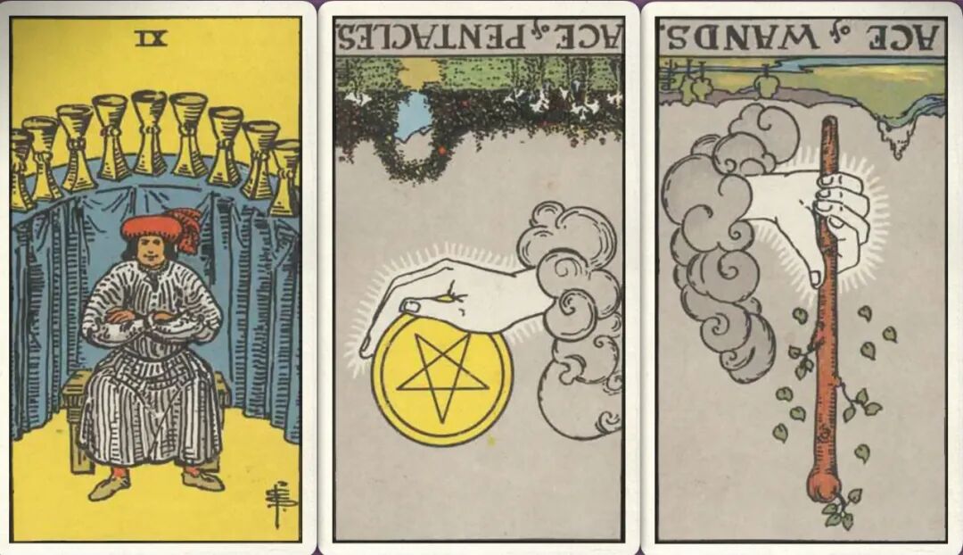 上半年:圣杯九+ 星币首牌- 权杖首牌-