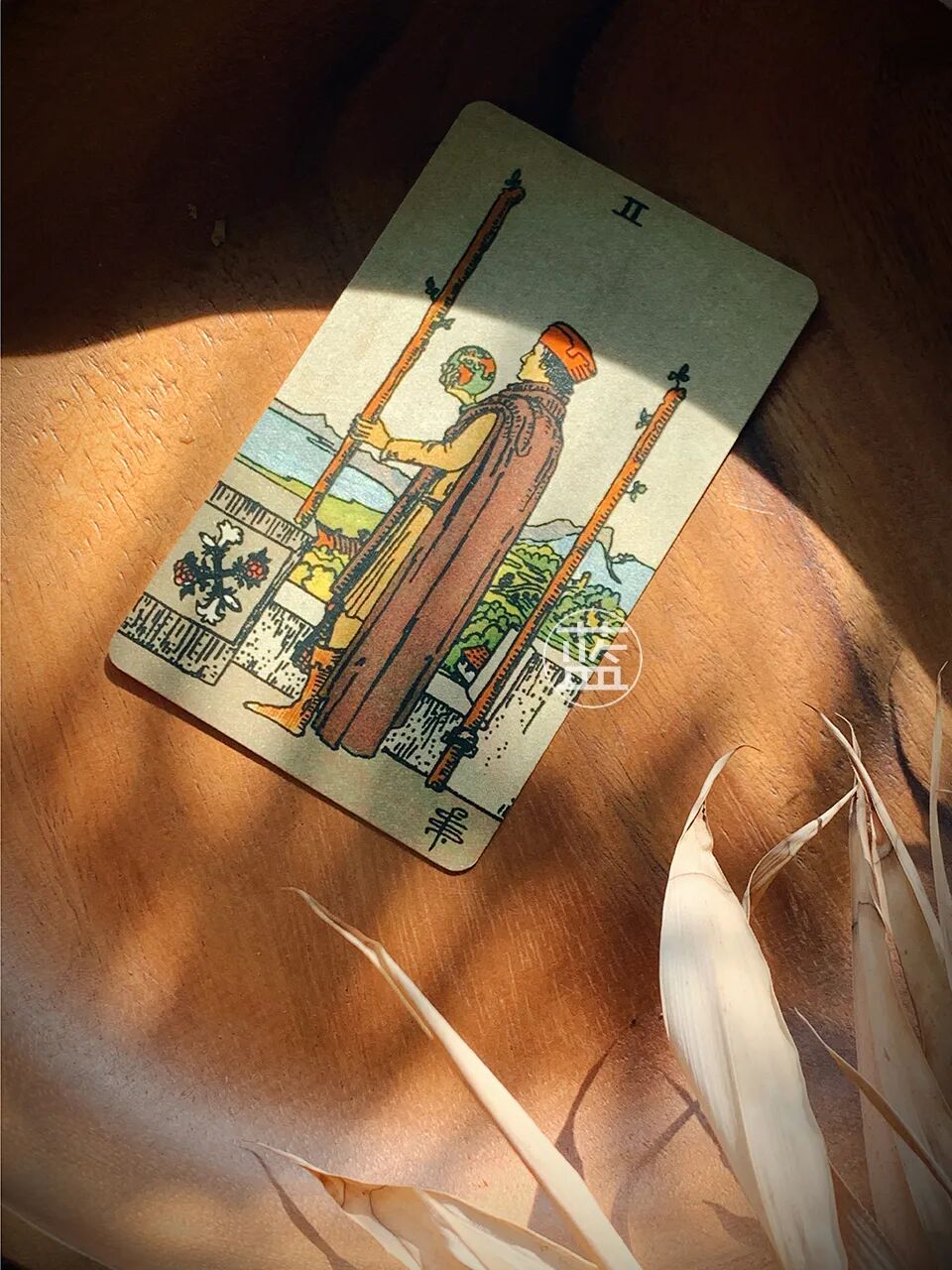 权杖2代表着选择,而且这个选择是经过深思熟虑后的决定。而本周再次抽到同样的牌面,预示着某些事情你可能并未下定决心,现在不能再拖拉着犹豫不决了——比如该放下的就应放下,过去的事已经过去,不必恋恋不舍;比如不要再期许那些不显示的幻想,其实单身也不错,可以做许多自己喜欢的事情;比如这个人其实还不错,那就先接触一下吧。