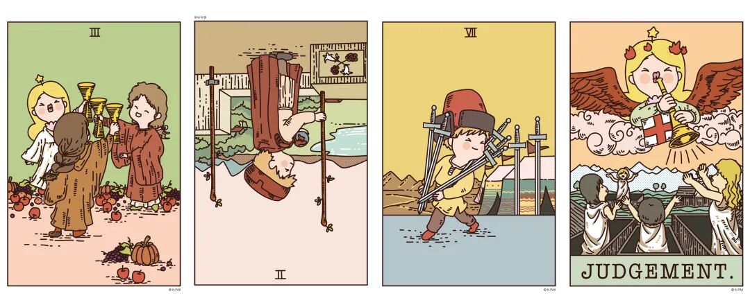 正位圣杯三、逆位权杖二