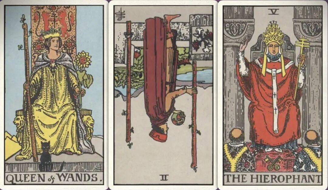 牌:权杖皇后+ 权杖二- 教皇+