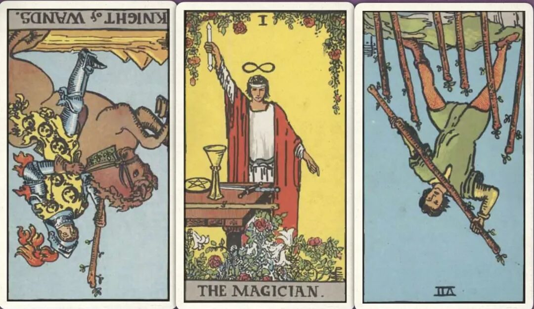 牌:权杖骑士- 魔法师+ 权杖七-