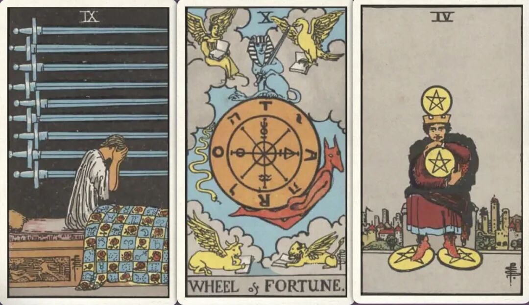 牌:宝剑九+ 命运之轮+ 星币四+