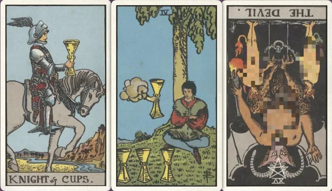 牌:圣杯骑士+ 圣杯四+ 恶魔-