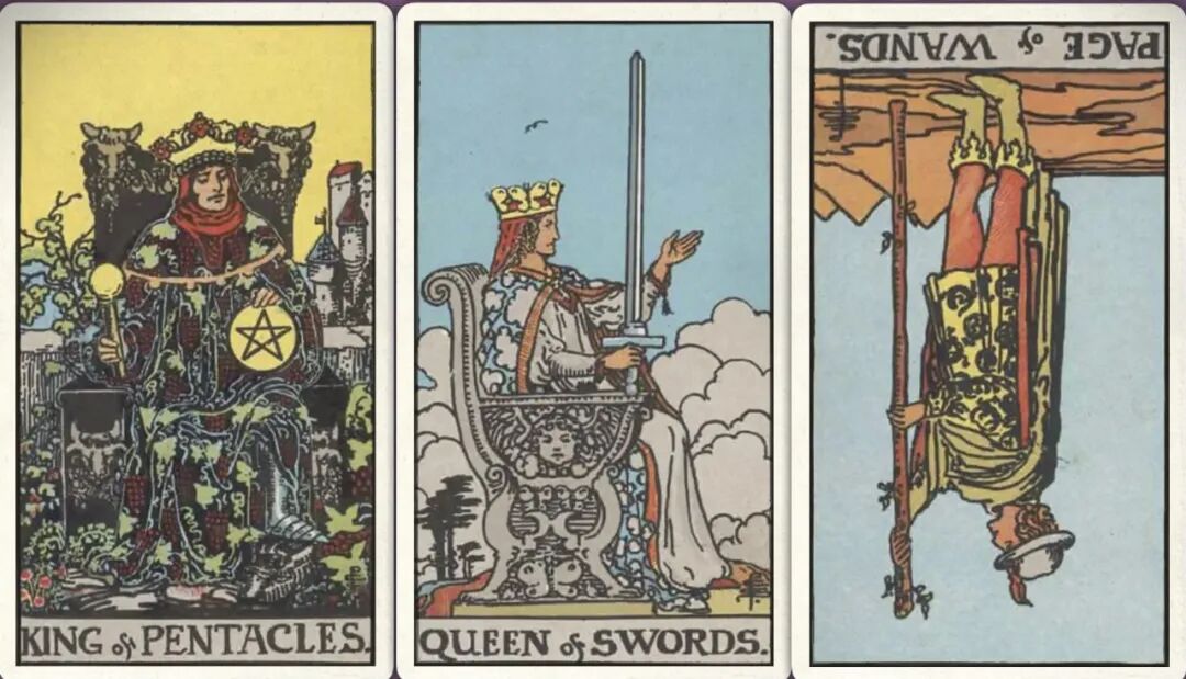 牌:星币皇帝+ 宝剑皇后+ 权杖侍从-