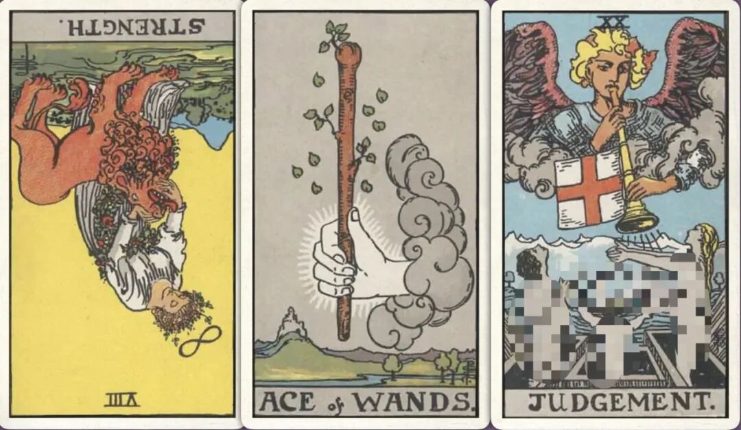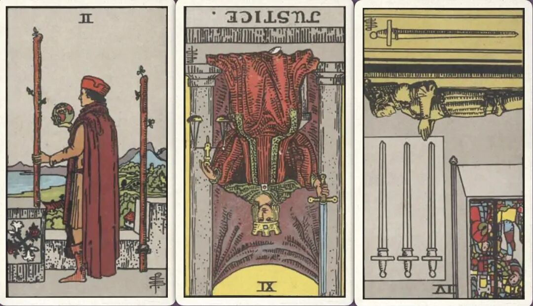 牌:圣杯二+ 权杖ace- 宝剑皇帝+