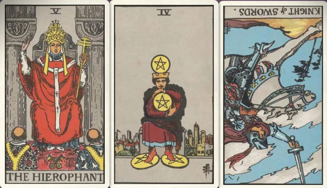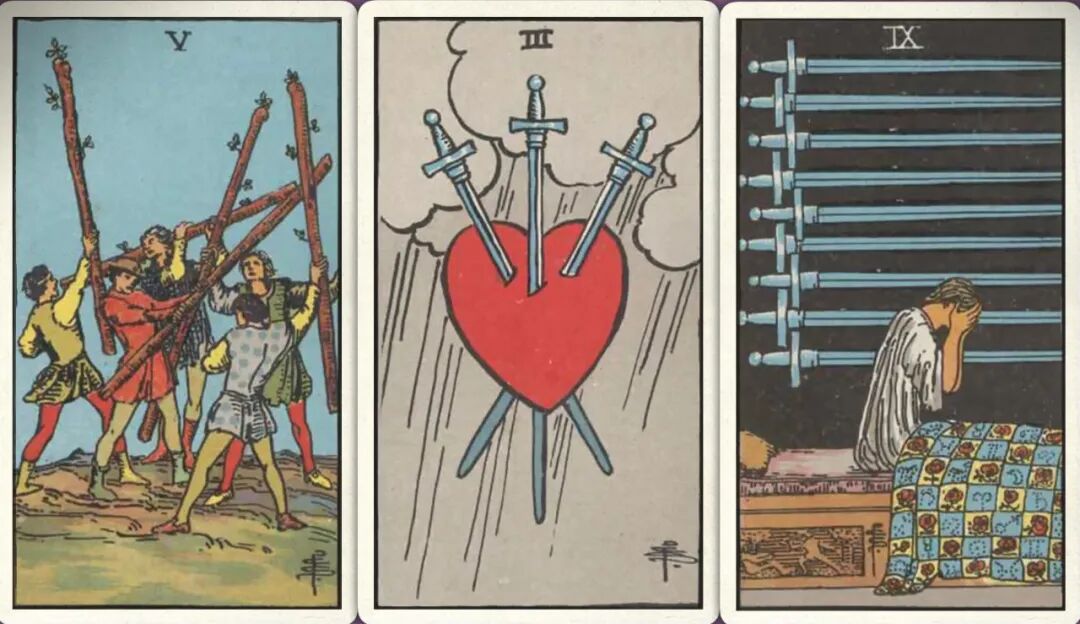 牌:权杖五+ 宝剑三+ 宝剑九+
