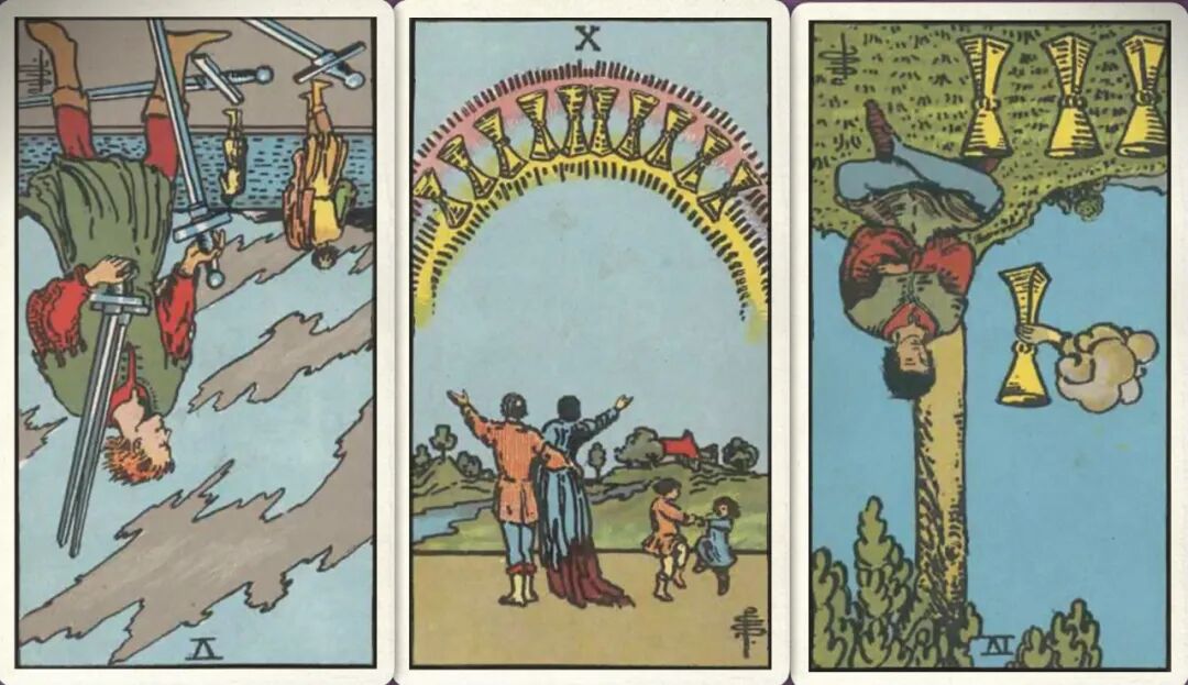 上半年:宝剑五- 圣杯十+ 圣杯四-