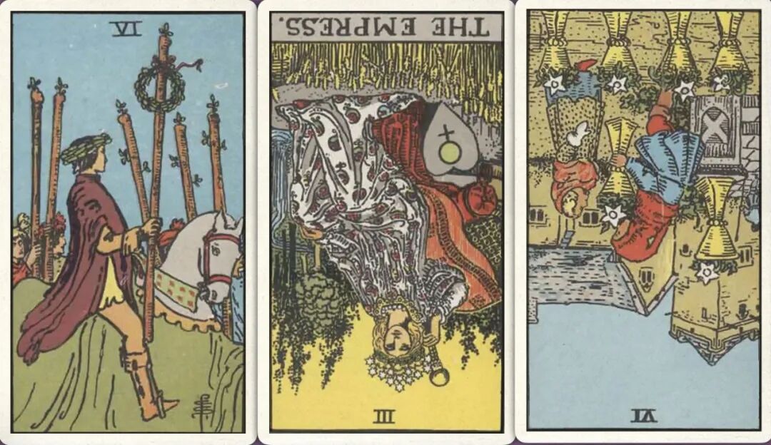 牌:权杖六+ 皇后- 圣杯六-