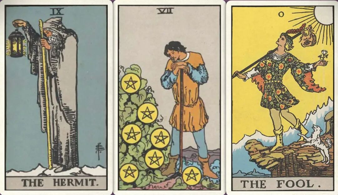 牌:隐士+ 星币七+ 愚人+