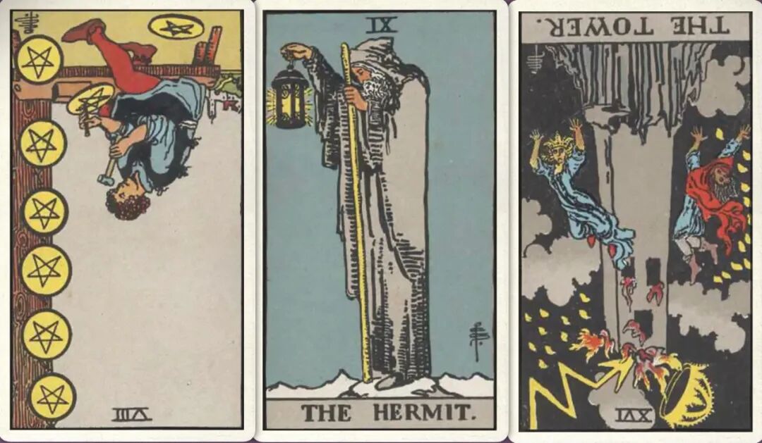 牌:星币八- 隐士+ 高塔-