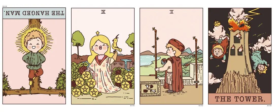 逆位吊人、正位星币九