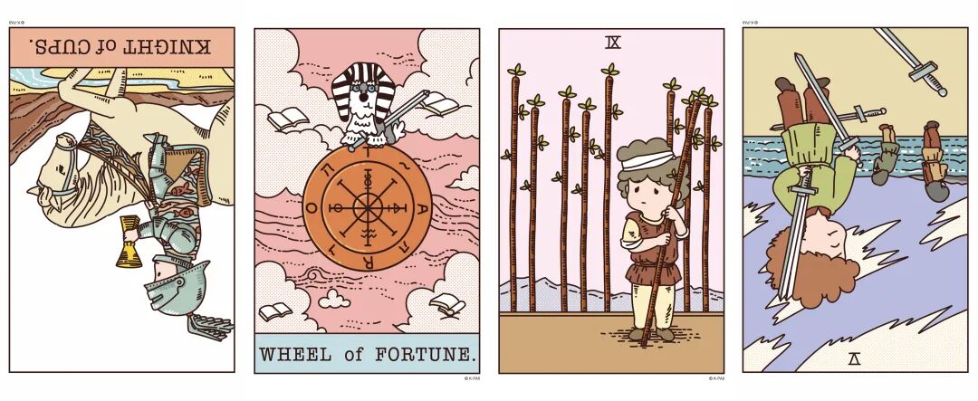 逆位圣杯骑士、正位命运之轮