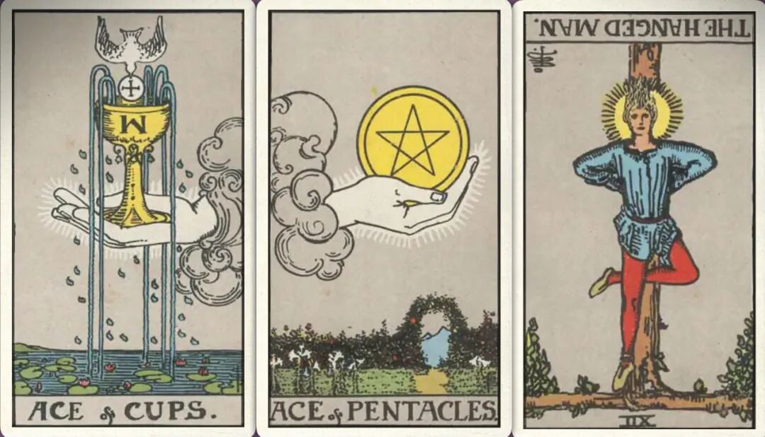 牌:圣杯首牌+ 星币首牌+ 倒吊人-