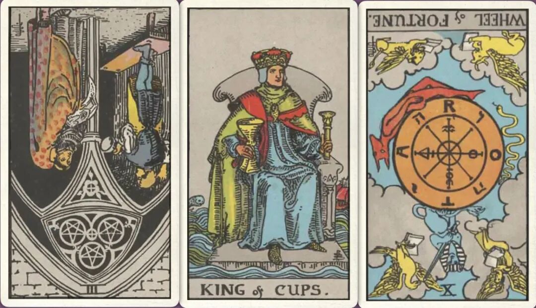 牌:星币三- 圣杯皇帝+ 命运之轮-