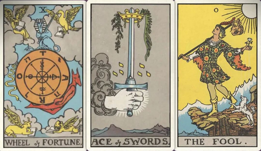 牌:命运之轮+ 宝剑ace+ 愚人+