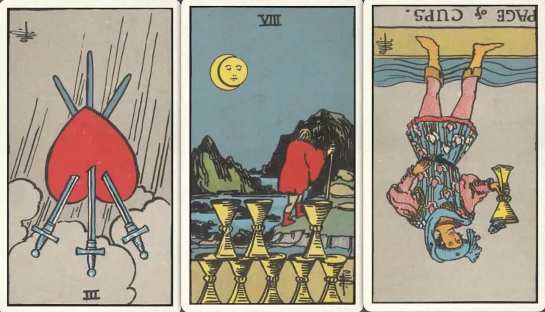 下半年:宝剑三- 圣杯八+ 圣杯侍从-