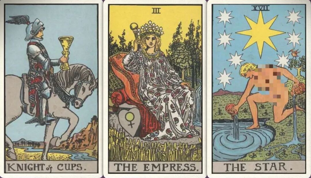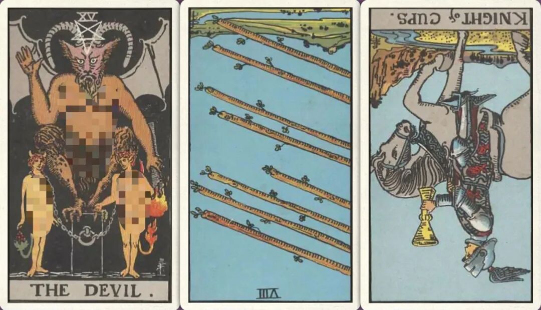 牌:恶魔+ 权杖八- 圣杯骑士-