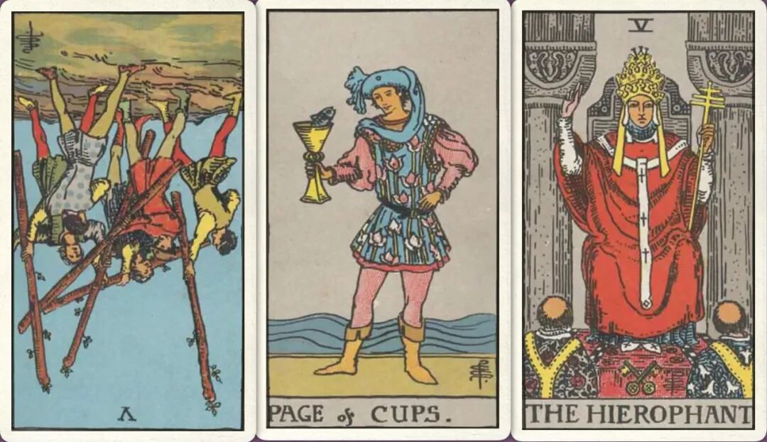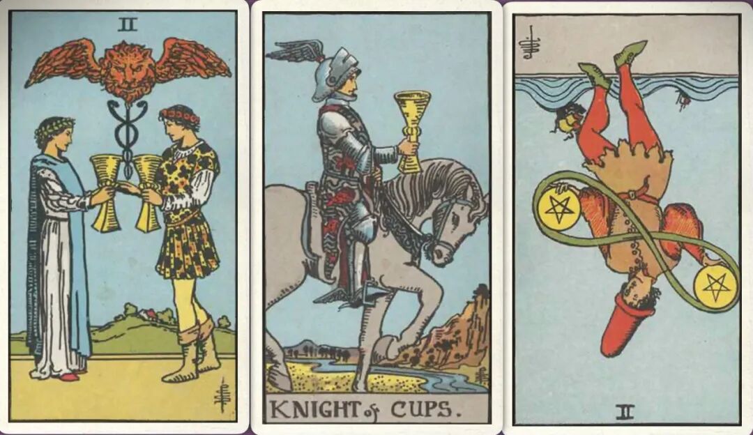 牌:宝剑骑士- 权杖侍从+ 圣杯侍从-