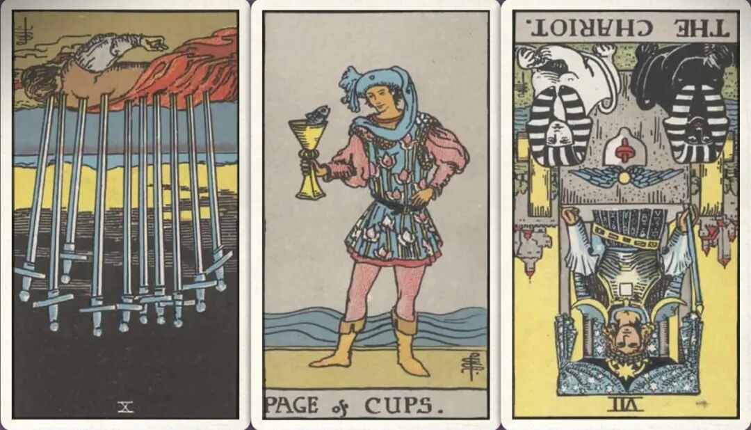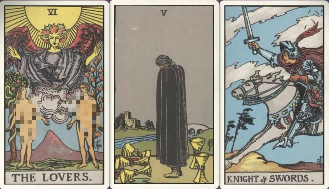 牌:恋人+ 圣杯五+ 宝剑骑士+