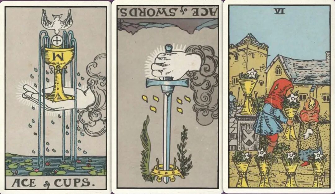 牌:圣杯ace+ 宝剑ace- 圣杯六+