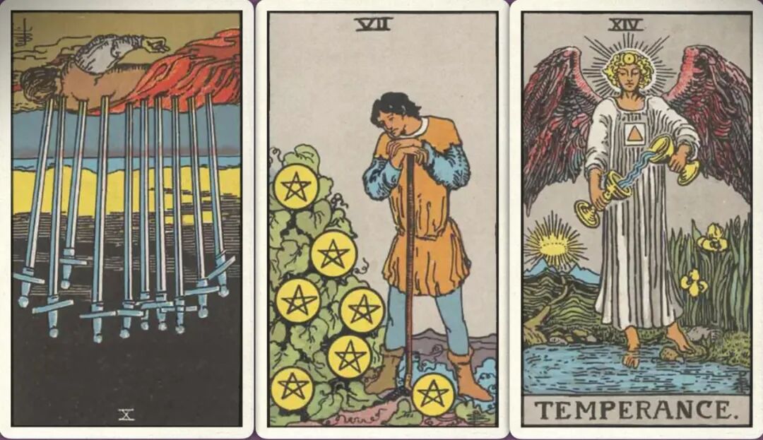 牌:宝剑十- 星币七+ 节制+