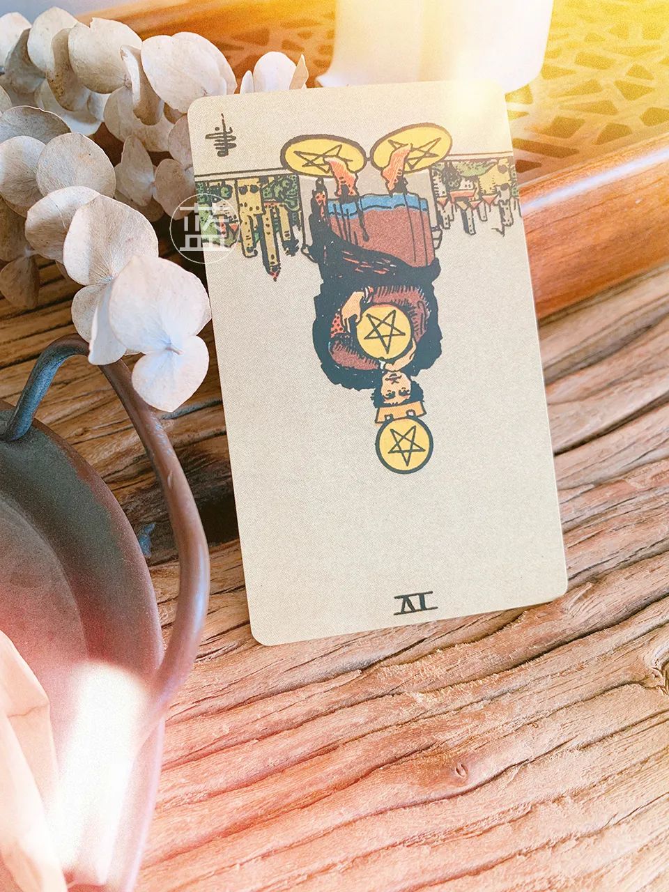 星币4主要侧重于金钱与物质上的富足,但也在强调内心的安全感,或者说这份安全感和金钱息息相关。而逆位时暗示着这种状态可能变本加厉,或者因为钱财的流失导致安全感的缺失。但是,因为你的重心都放在钱财或物质生活方面,情感上可能会相对比较空乏,或没心思。