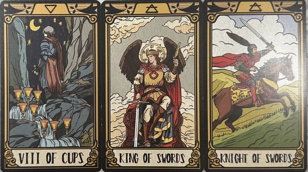 牌:圣杯八+ 宝剑皇帝+ 宝剑骑士+