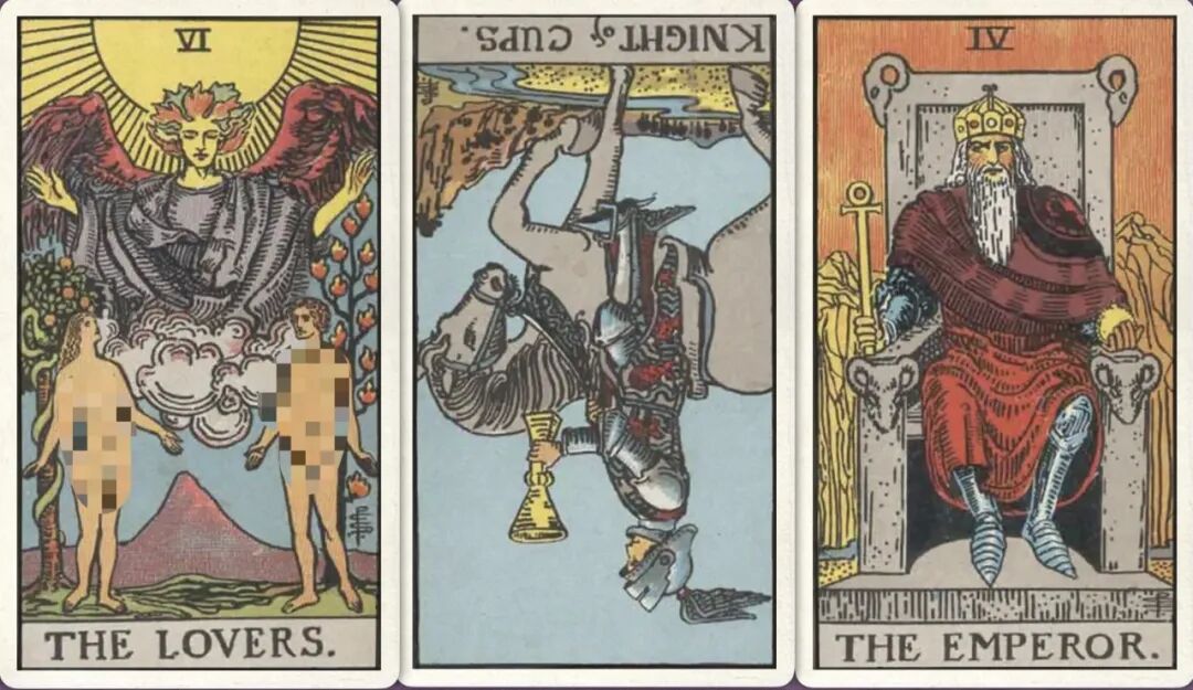 牌:恋人+ 圣杯骑士- 皇帝+