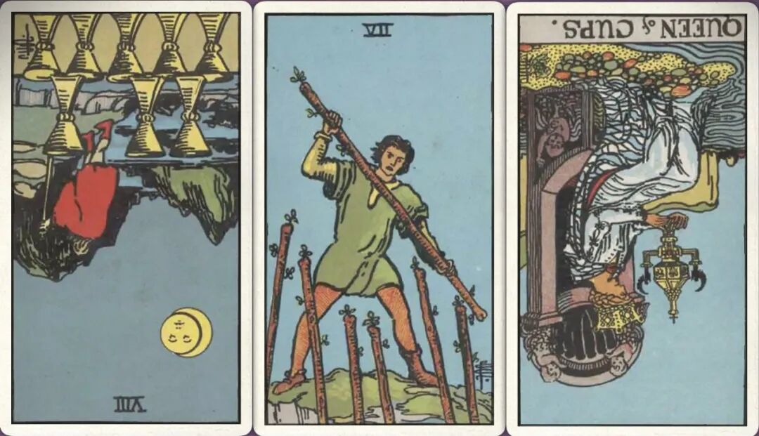 牌:圣杯八- 权杖七+ 圣杯皇后-