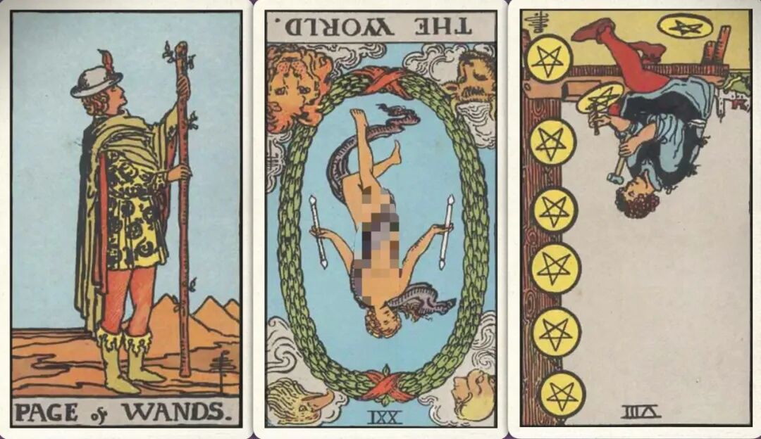 牌:权杖侍从+ 世界- 星币八-
