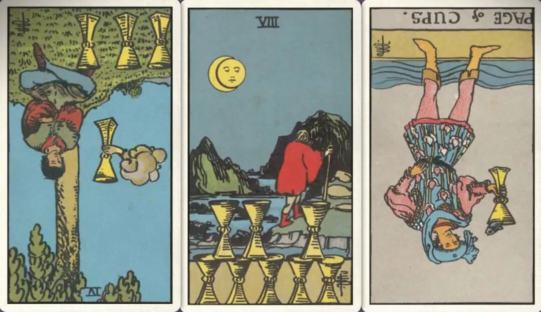 牌:圣杯四- 圣杯八+ 圣杯侍从-