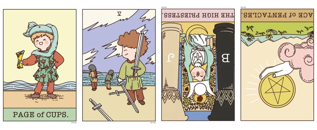 逆位女祭司、逆位星币首牌