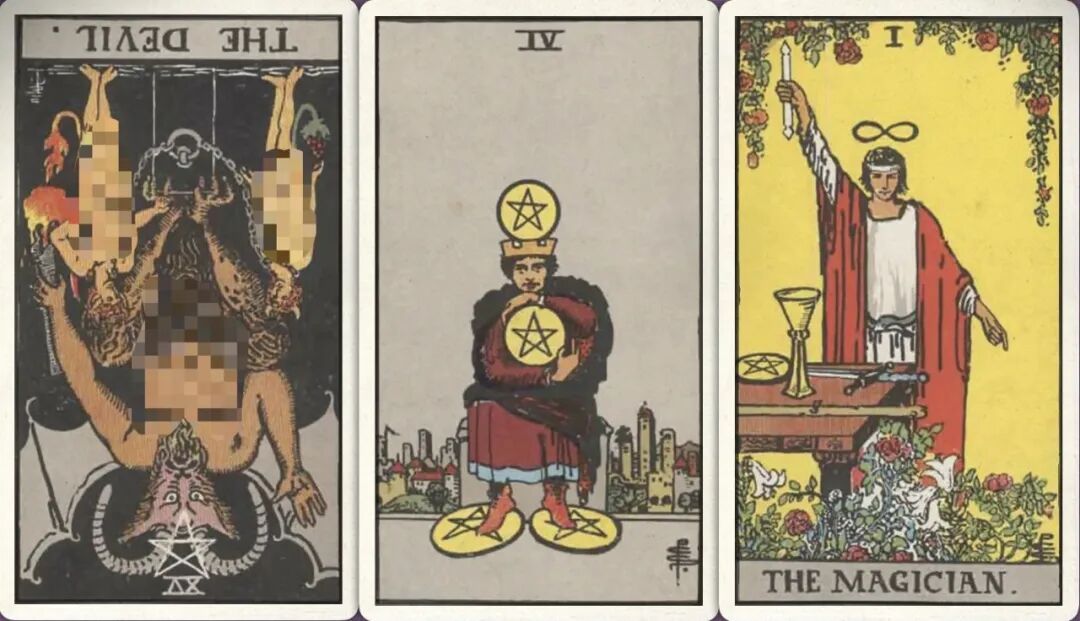分析:财运方面需要特别谨慎哦,面对一些看似前景不错的挣钱机会一定要三思而后行。两张代表思想的宝剑牌出现,提醒你,未来里你的冷静思考非常重要,不要轻易做决策哈!三月下旬,也不太适合投项目哦。