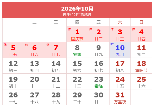 2026年假期放假时间表,春节放9天,2026放假日历表