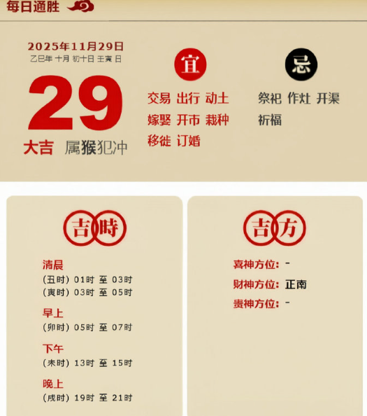 易学董老师:2025年11月29日 每日通胜+今日生肖红黑榜