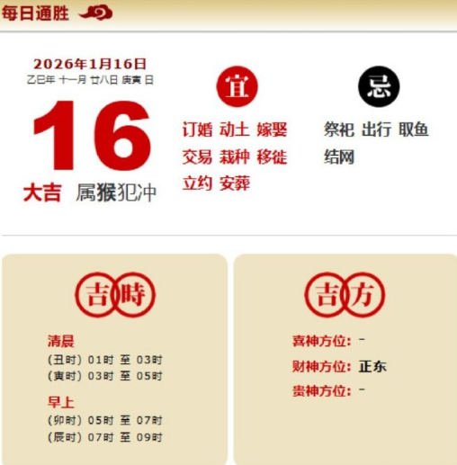 易学董老师:2026年1月16日 每日通胜+今日生肖红黑榜