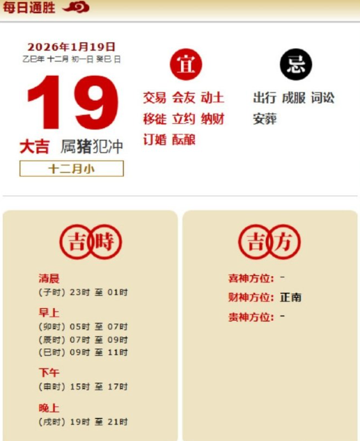 易学董老师:2026年1月19日 每日通胜+今日生肖红黑榜