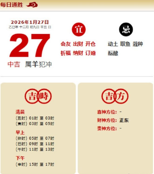 易学董老师:2026年1月27日 每日通胜+今日生肖红黑榜