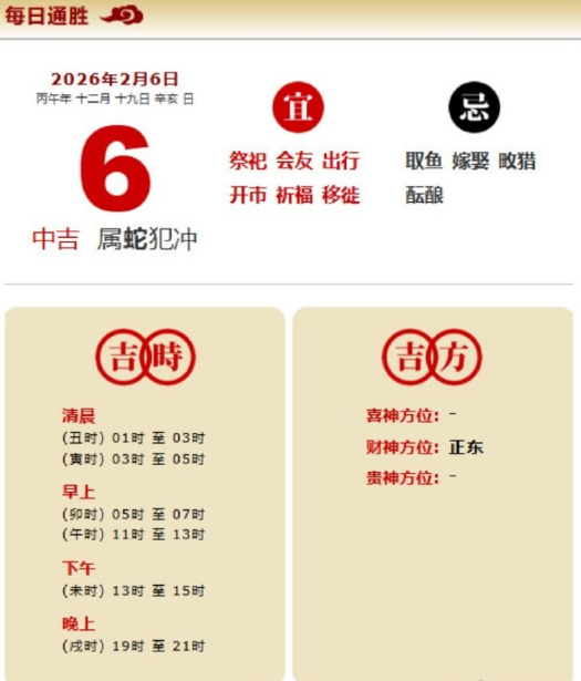 易学董老师:2026年2月6日 每日通胜+今日生肖红黑榜
