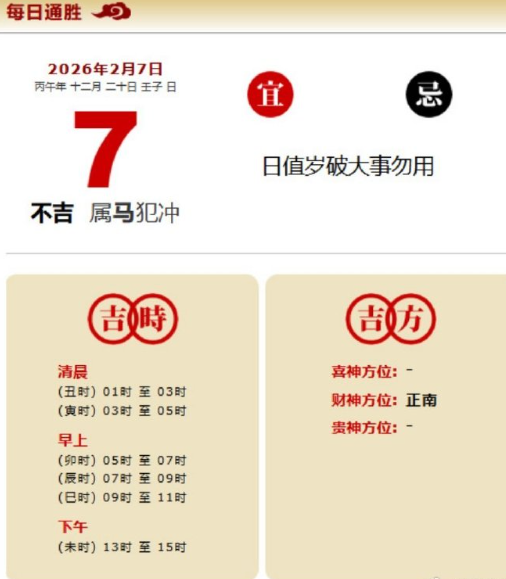 易学董老师:2026年2月7日 每日通胜+今日生肖红黑榜