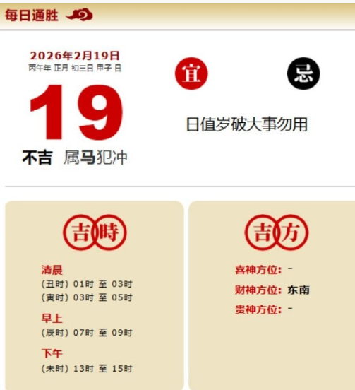 易学董老师:2026年2月19日 每日通胜+今日生肖红黑榜