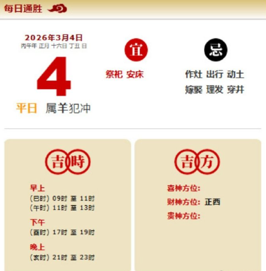 易学董老师:2026年3月4日 每日通胜+今日生肖红黑榜