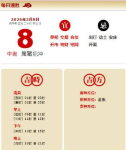 易学董老师:2026年3月8日 每日通胜+今日生肖红黑榜