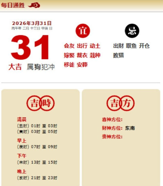 易学董老师:2026年3月31日 每日通胜+今日生肖红黑榜