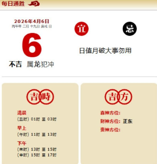 易学董老师:2026年4月6日 每日通胜+今日生肖红黑榜
