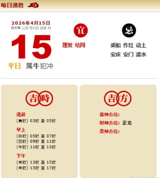 易学董老师:2026年4月15日 每日通胜+今日生肖红黑榜