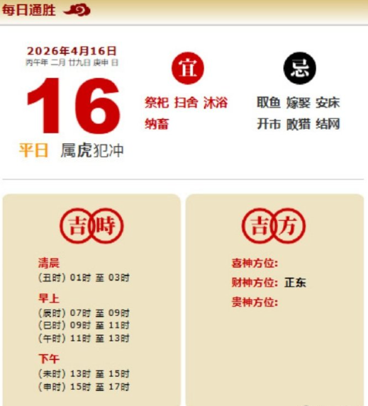 易学董老师:2026年4月16日 每日通胜+今日生肖红黑榜